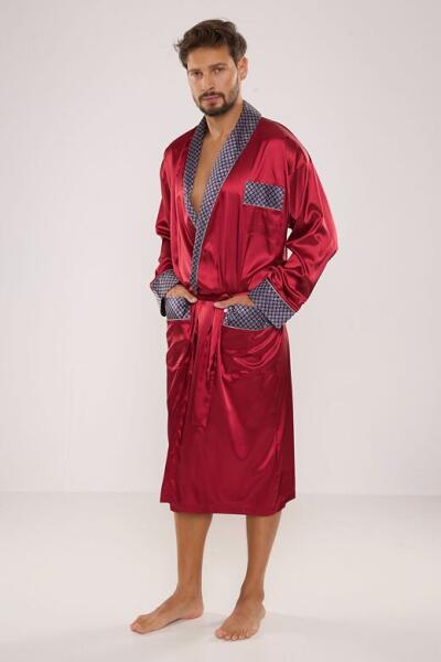 De Lafense Adam férfi szaténköntös, borvörös, L