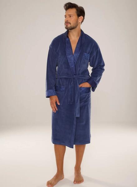 Klasszikus férfi fürdőköpeny- bársony velúrból készült- sálgallér- derékban megkötős, kényelmes zsebekkel- térdhosszúság- mellkasi zseb- szemet gyönyörködtető dombornyomott mintákkal ellátott felületekÖsszetétel: 80% pamut, 20% poliamid