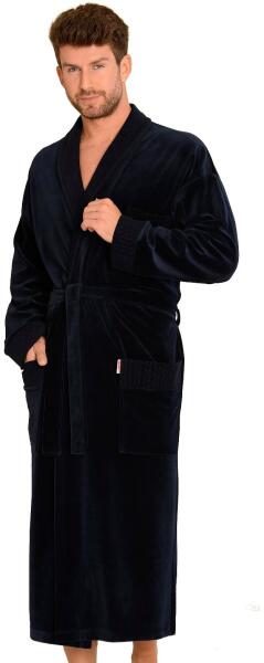 Kellemes velúr típusú pamut anyagból készült férfi fürdőköpeny. A fürdőköpeny kényelmes és elegáns is egyben. Imádni fogod puha, bársonyosan puha anyagát. Derékban övvel van megkötve, mindkét oldalán praktikus zsebek találhatók. Ideális fürdés után és reggeli mellé. Anyaga: 80% pamut, 20% poliészter