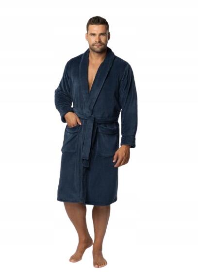 Envie Férfi fürdőköpeny Elegant flanel fleece szegéllyel, sötétkék, XL/XXL (EN-M-NW24/25-020030076-020086-XL/XXL)