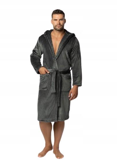 Envie férfi kapucnis fürdőköpeny Felix flanel fleece sötétszürke M/L (EN-M-NW24/25-020030077-020262-M/L)