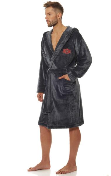 Kellemes puha anyagból készült meleg férfi fürdőköpeny kapucnival. Derékban övvel van megkötve, mindkét oldalán praktikus zsebek találhatók. A férfi fürdőköpeny meleg meleg érzést kölcsönöz a testnek fürdés után. Vigye magával nyaralásra vagy wellness tartózkodásra. Anyaga: 100% poliészter