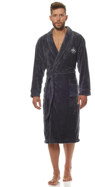 Férfi fürdőköpeny kendőgallérral Kellemes és puha kötés Bordás derék Mandzsetta és gallér kontrasztos fonallal bélelt Kényelmes oldalzsebek Összetétel: 100% poliészter