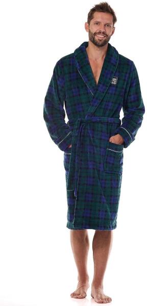 Férfi fürdőköpeny - kellemes és puha anyag - kendőgallér - kis alkalmazás a mellkason - derékban megkötés - mandzsetta és gallér egységes szegéllyel bélelt - praktikus zsebek az oldalakon Összetétel: 100% poliészter