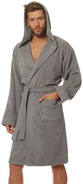L&L Leon férfi frottír fürdőköpeny, szürke, rövidebb, XL